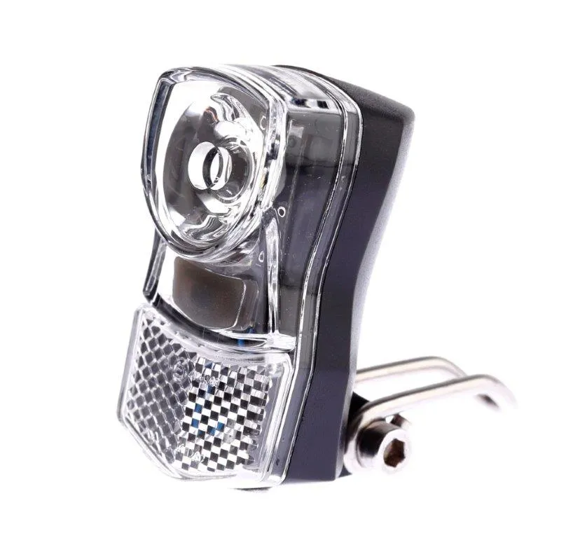 IkziLight koplamp Little chroom 1×1 Watt LED IkziLight Little LED koplamp is monteerbaar op de kroonbout. De IkziLight Little koplamp heeft een zeer krachtige LED plus een licht-versterker. Dit maakt dat deze kleine krachtpatser een lichtstraal uitzend die tot 900 meter zichtbaar is. De IkziLight Little koplamp is zo ontworpen dat hij in 240° zijn licht uitstraalt. Deze IkziLight koplamp heeft een stevige rvs-steun voor montage op de kroonbout. IkziLight batterij koplamp LED Little, de kleine krachtpatser In het donker zien ze je niet . Dat moet uiteraard voorkomen worden door ervoor te zorgen dat er goede verlichting zit op de fiets. De IkziLight Little koplamp is een fraaie en kleine LED koplamp die niet onderdoet voor de grotere koplampen. Door de speciaal gevormde lens en de krachtige LED is deze IkziLight koplamp een volwaardige koplamp terwijl het tegelijkertijd wellicht de kleinste koplamp is voor montage op de kroonbout. Uiteraard zijn de batterijen meegeleverd. IkziLight: zien en gezien worden! Merk: IkziLight Model: Little Basismateriaal: kunststof / plexiglas (PMMA) Basiskleur: transparant / zwart Montage plaats: voorvork Batterij type: LR03/AAA Penlite Keurmerken: RoHs, CE Batterijen meegeleverd: Ja Kleur licht: wit Aantal Lux: 7 lx Oplaadbaar: Nee Reflector: Ja Type LED: 1 witte LED Zicht: 900 Meter Waterproof: IPX3 Lumen: 72 lm Aantal batterijen: 3 Aantal leds: 1 Licht bereik: 900 m Hoogte eenheid: 45 mm 240 graden rondom zichtbaar Lens voorzien van een lichtversterker Met E1 reflector Standlicht Super helder en krachtige witte LED